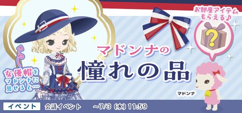 <イベント特典アイテム> ・マドンナの憧れの品(お部屋アイテム) ※イベント期間中、1日1個まで ※会話ミニイベント終了後に、 「アイテムボックス>お部屋アイテム」へ自動で配布されます <イベントの流れ> イベント参加用アイテムを着用して、仮想タ…